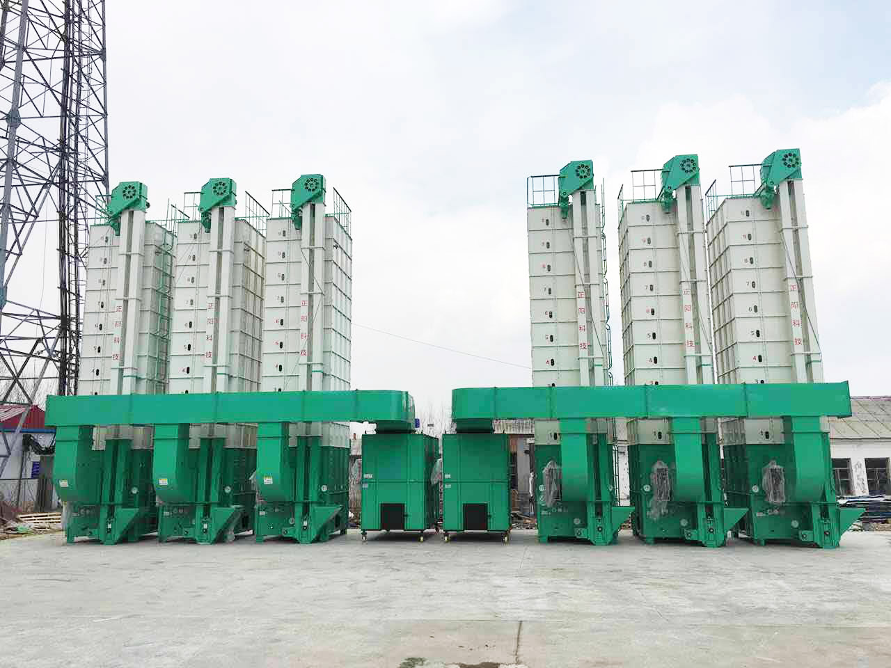 Grain dryer set for 2 hot-air stoves and 6 drying machines