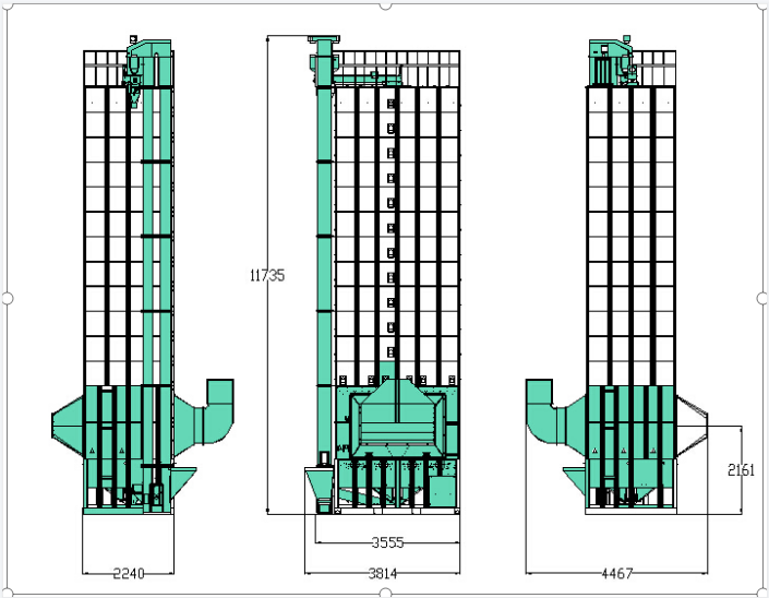 2. 強制分散裝置及多支排糧輪定量下料循環,薄層大風量,谷物干燥均勻,干燥效率高。