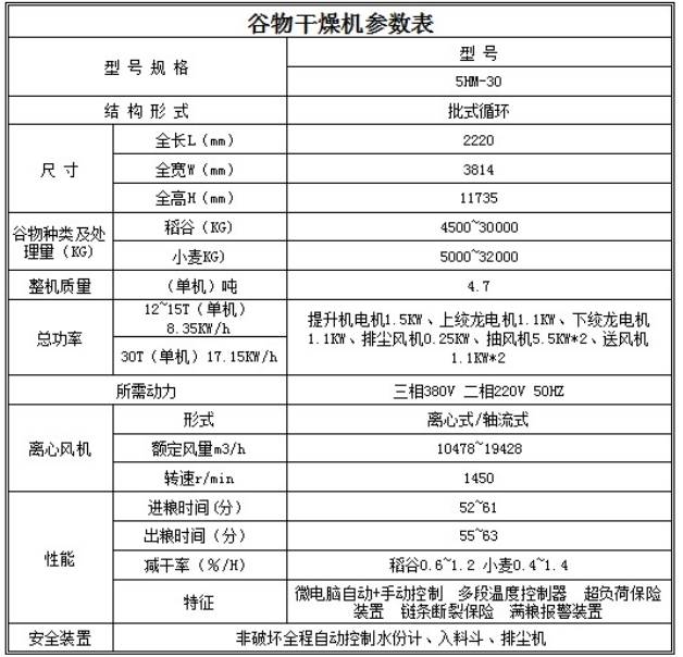產品特點: 1. 一機多用:可烘干稻谷、小麥、玉米、花生、大豆、高梁等糧食作物及其種子; 2. 強制分散裝置及多支排糧輪定量下料循環,薄層大風量,谷物干燥均勻,干燥效率高。 3. 低溫干燥,米質好、種子發芽率高。 4. 采用大型螺旋送料器、高強度尼龍畚斗、不銹鋼網板,耐磨、抗變形、耐用又不傷谷物。 5. 殘料清掃裝置,輕松清除谷物殘料,防止混種。